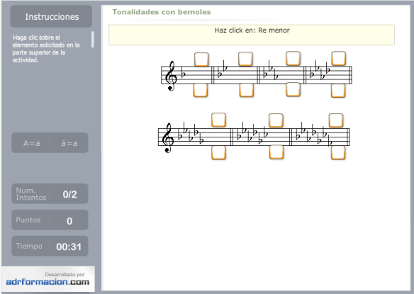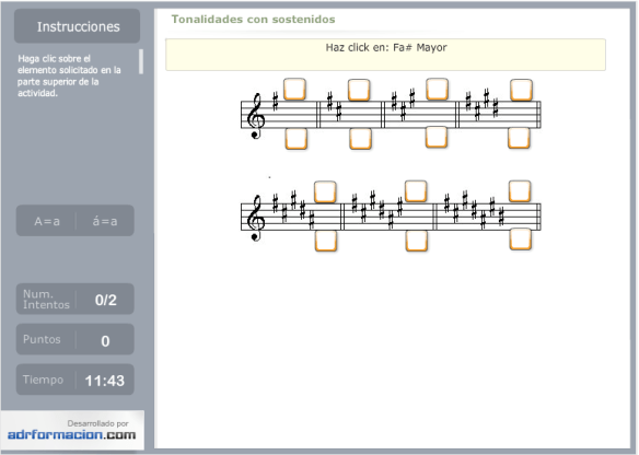 Tonalidades Posted on enero 17, 2012 por almudenalenguajemusical Aquí tenéis algunas actividades que he realizado para trabajar las tonalidades. Hay que pinchar en la imágen para realizar la actividad. Espero que os sirvan de ayuda… Comparte esto: Haz clic para compartir en X (Se abre en una ventana nueva) X Haz clic para compartir en Facebook (Se abre en una ventana nueva) Facebook Me gusta Cargando... Relacionado