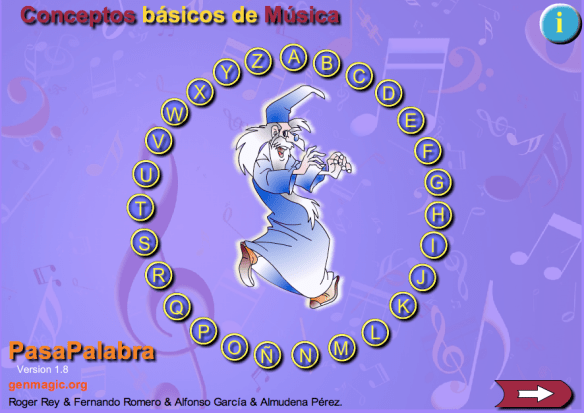 Aquí os dejo un Pasapalabra Musical que he elaborado con la ayuda de los profesionales de la red social educativa GenMagic. Como todos sabéis, este año se celebra en el Conservatorio «Jesús de Monasterio», del 19 al 24 de Marzo, la III SEMANA !NUSUAL DE LA MÚSICA (S!M 3). Pinchando en este enlace podéis acceder a toda la información de la S!M 3, donde veréis todos los conciertos y actividades que se van a realizar en el centro durante esa semana, todas totalmente gratuitas. El Departamento de Lenguaje Musical participa en las actividades organizando, siendo ya el tercer año, el concurso Ritmos y Notas, en el que participan todos/as los/as alumnos/as de las Enseñanzas Elementales. La última prueba del concurso consiste en un Pasalamúsica, una versión musical del famoso Pasapalabra, en el que cada grupo de participantes tiene que completar un rosco musical contestando cuestiones relacionadas con el Lenguaje Musical y la música en general. Para que vayáis ensayando aquí os dejo este primer Pasalamúsica… Ánimo y mucha suerte en el concurso… ya sabéis que cuánto más estudiéis más posibilidades tenéis de completar el rosco correctamente. Pinchad en la imágen para comenzar el juego.
