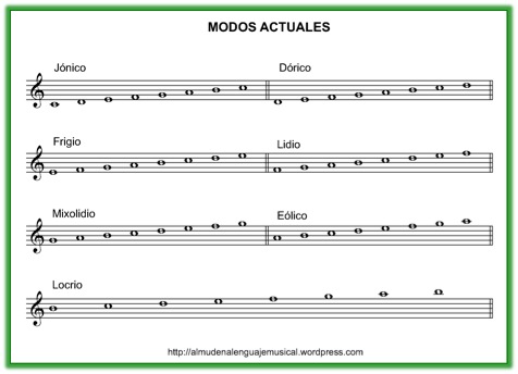 Este trimestre hemos trabajado en clase la música modal. Aquí os dejo un resumen para que podáis repasar. También lo tenéis en la pestaña 1º EP (Teoría) para que lo podáis imprimir.