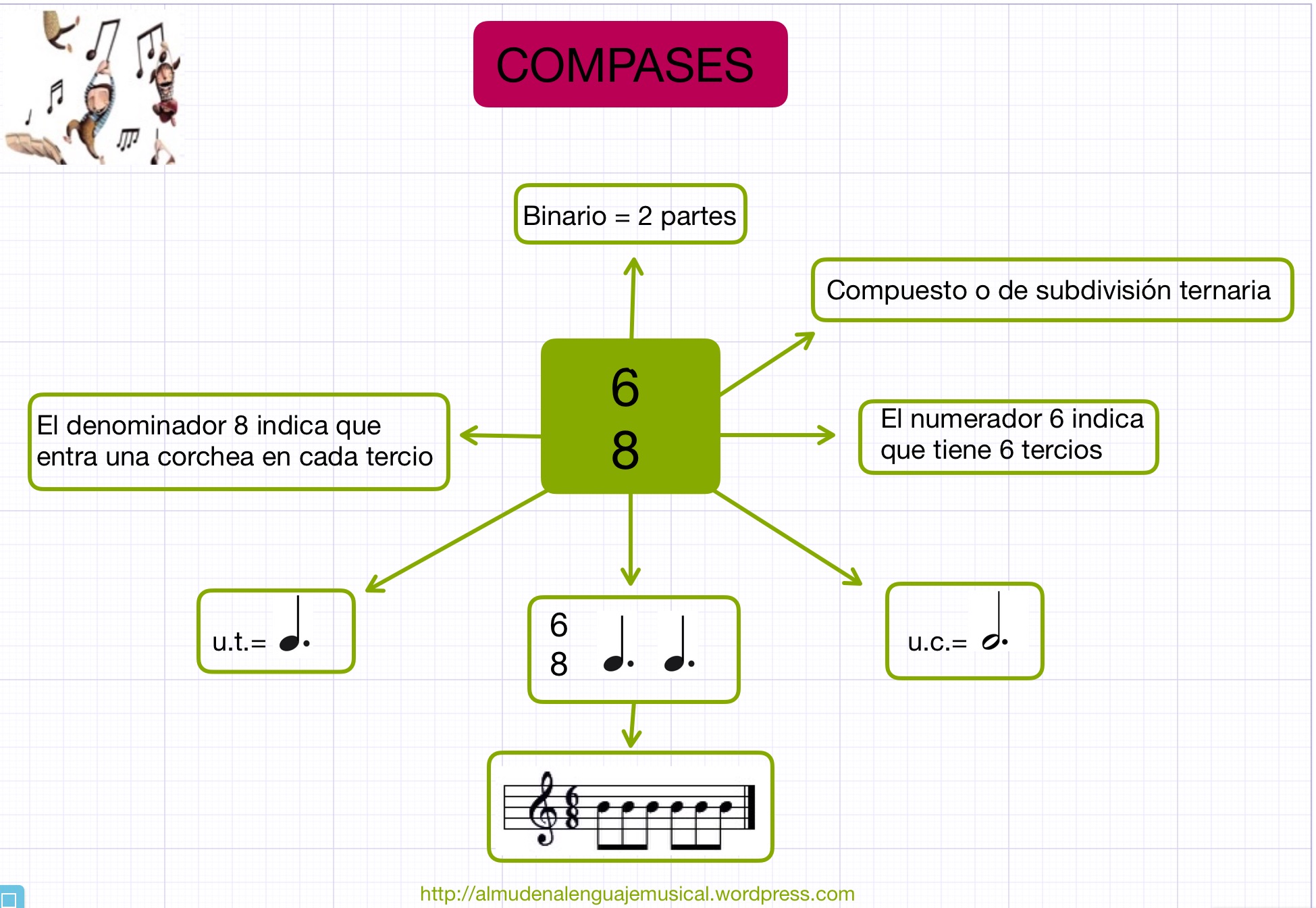 En 1º de Enseñanzas Elementales hemos trabajado durante este curso los compases 2/4, 3/4, 4/4 y 6/8. Aquí os dejo un mapa conceptual sobre éste último que he elaborado con la herramienta Baiboard para iPad y un muro interactivo elaborado con la herramienta Padlet, en el que tenéis los mapas conceptuales de todos los compases trabajados este curso para que podáis repasar. También podéis acceder a estos mapas pinchando en la pestaña 1ºEE (Teoría).