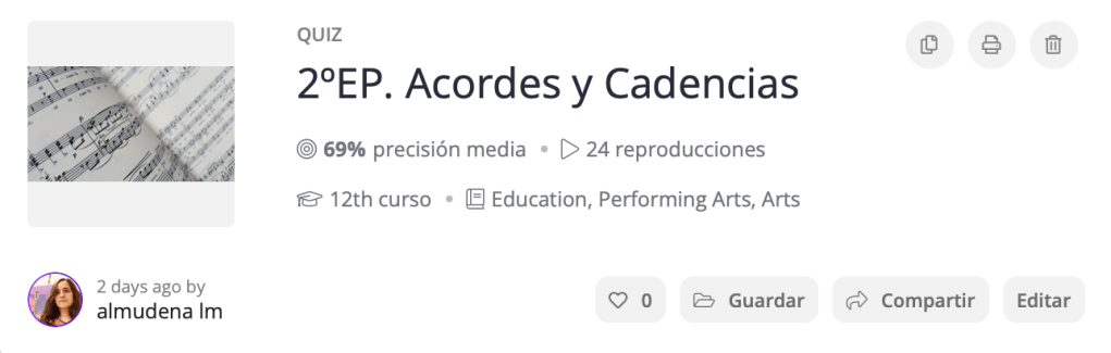He preparado mi primer Quizziz para repasar acordes y cadencias con mi clase de 2ºEE.PP. Para comenzar a jugar hay que hacer clic en «iniciar una prueba en vivo» y después en «a ritmo de instructor». Podéis acceder al juego a través del siguiente enlace o haciendo clic en la última imagen. ¡¡Espero que os guste!! 😉